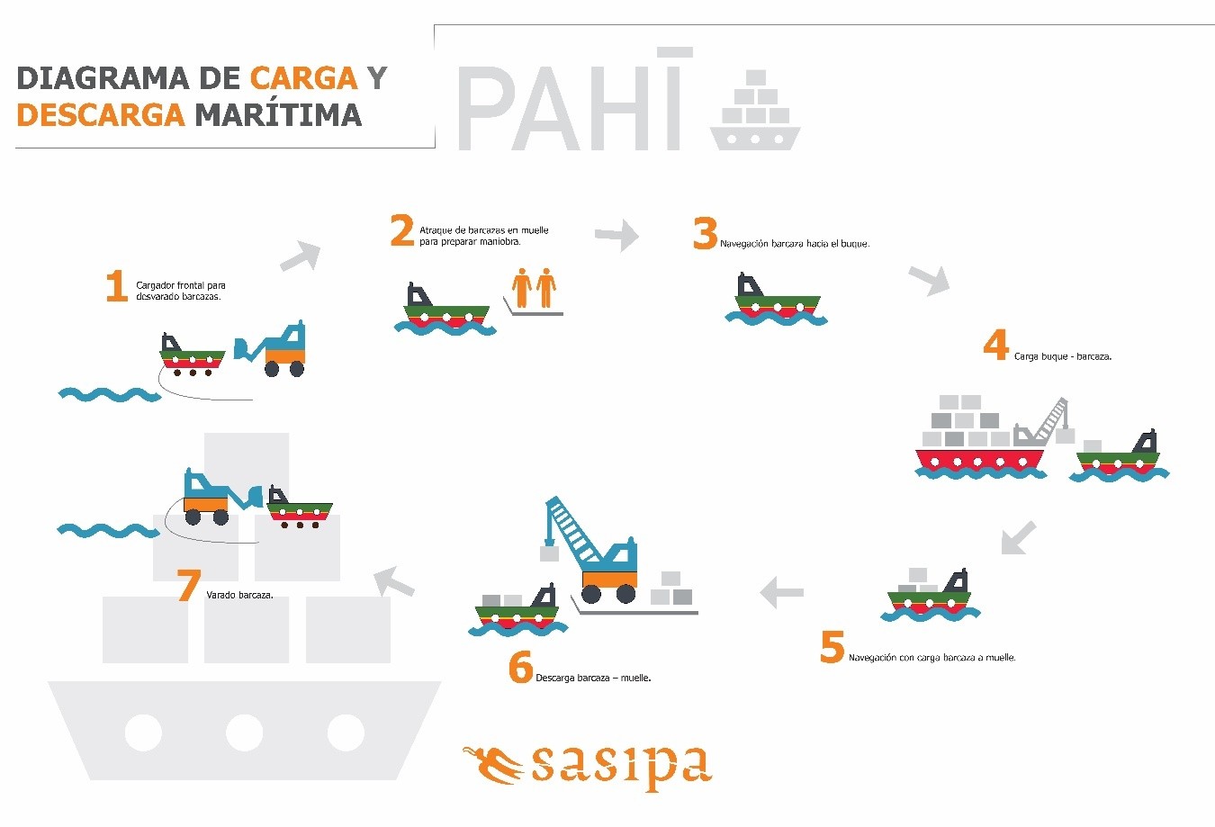 SASIPA posee la concesión marítima del atracadero multipropósito de Hanga Piko y la Zona de Varadero, además de contar con dos barcazas, Rano Raraku II y Rano Aroi II, cada una con capacidad de transporte de 35 toneladas de carga. La empresa dispone también de maquinaria y equipamiento especializado, así como de un equipo altamente calificado en transporte marítimo y operaciones portuarias.